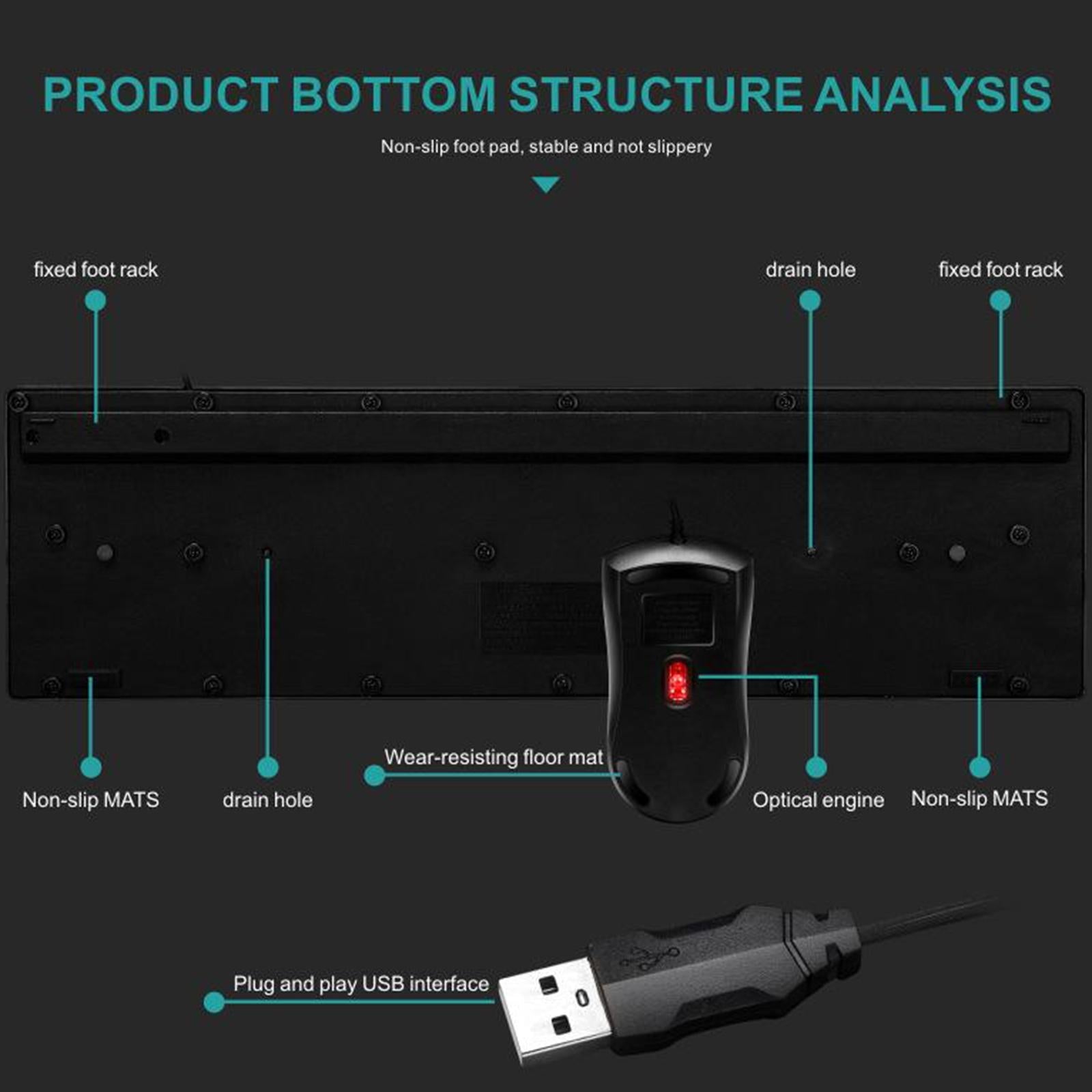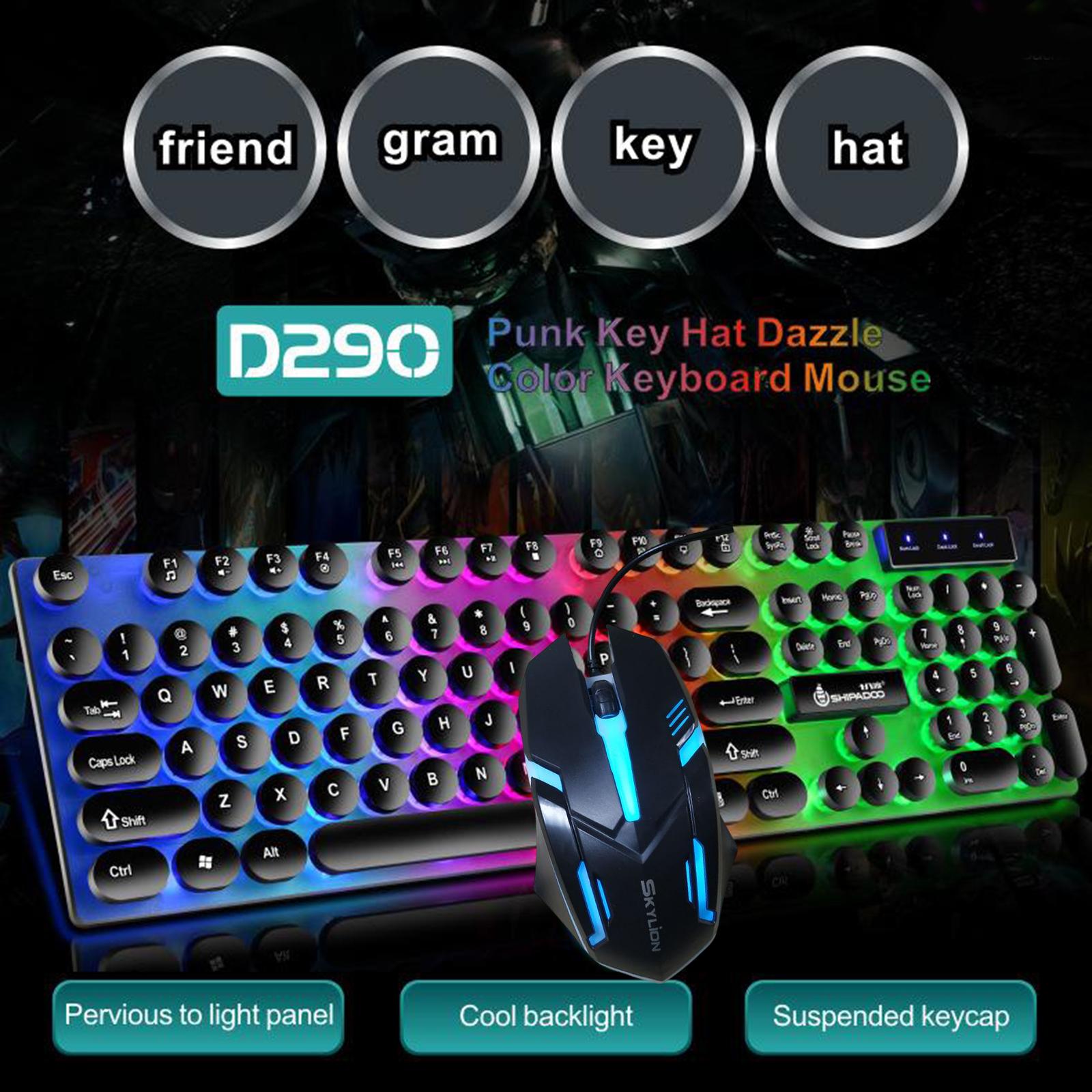 USB Wired RGB Rainbow LED Backlit Gamer Mouse and Keyboard Set Black
