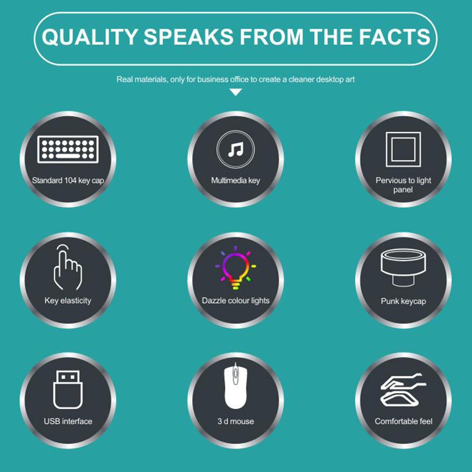 USB Wired RGB Rainbow LED Backlit Gamer Mouse and Keyboard Set White