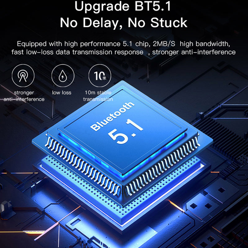 - Adopting the latest Bluetooth 5.1 technology, with low power consumption. The anti-interference ability has been increased, new technologies have been adopted to reduce the loss of transmission efficiency