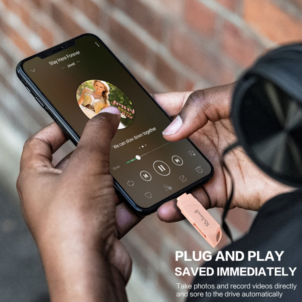 Uniqkart DN-PG31 128GB External Storage Memory Stick Flash Drive 3 in 1 Lightning/Micro/USB Swivel U Disk - Pink