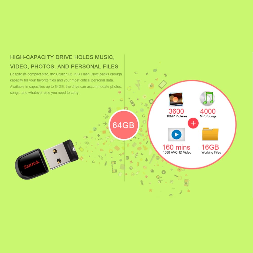 Despite its compact size the Cruzer Fit USB Flash Drive packs enough capacity for your favorite files and your most critical personal data.
