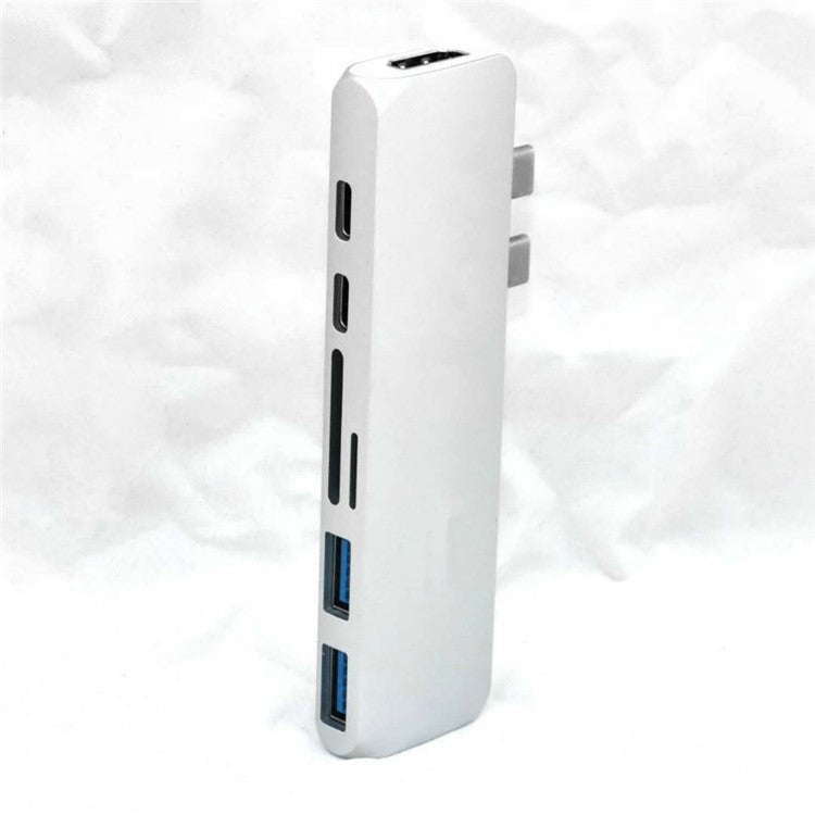 7-in-1 Dual USB-C Port to Thunderbolt 3/4K HDMI/USB-C/2xUSB3.0/SD/MicroSD Hub Adapter for MacBook Pro - Silver
