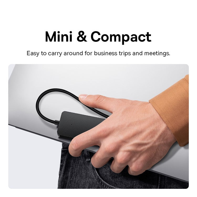 BASEUS UltraJoy Series Portable USB-A to USB3.0 4-Port Expansion HUB Lite 15cm - Black
