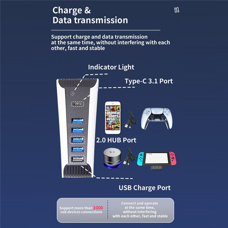 HONSON USB Hub Splitter Expansion Docking Station for PS5 Console