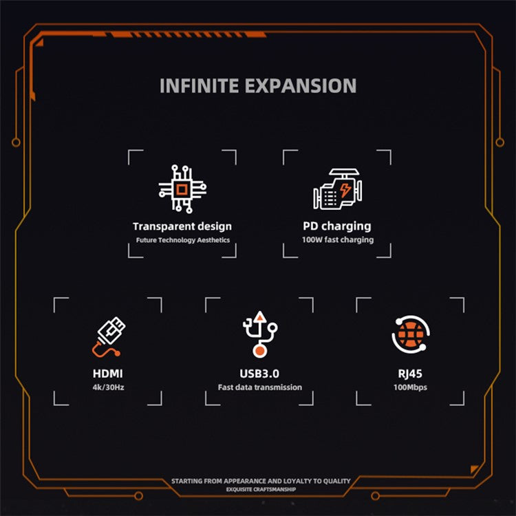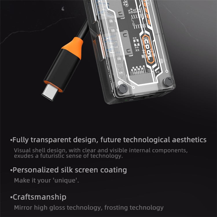 Type-C Hub Adapter to PD Type-C+HD Video Output+USB 3.0+USB 2.0+RJ45