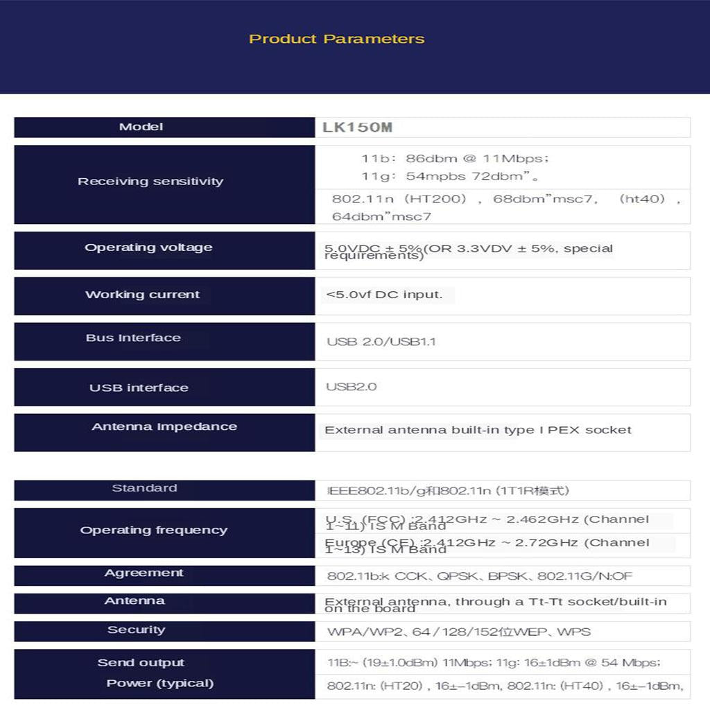 1 x 150M USB 2.0 Wireless LAN Adapter with Antenna
