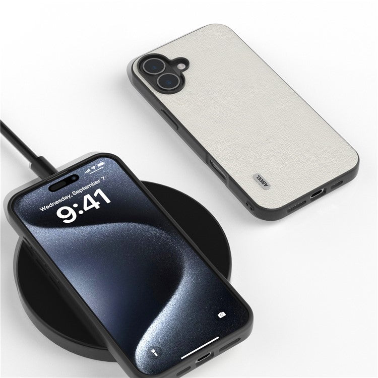 ABEEL For iPhone 16 Plus Case Anti-scratch Genuine Cow Leather Back Phone Cover - Grey