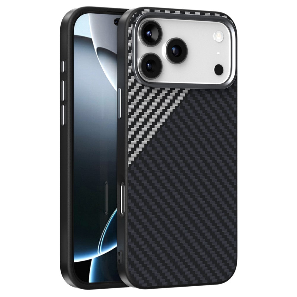 ABEEL For iPhone 17 Pro Max Case Compatible with MagSafe Carbon Fiber Texture Back Cover - Black  /  Silver