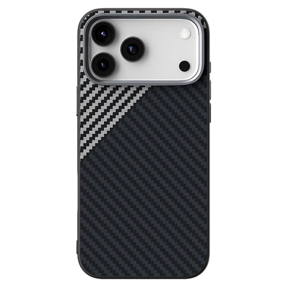 ABEEL For iPhone 17 Pro Max Case Compatible with MagSafe Carbon Fiber Texture Back Cover - Black / Silver