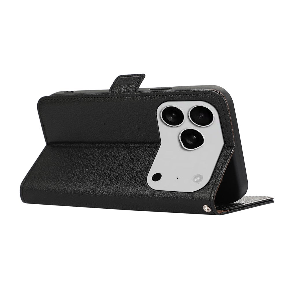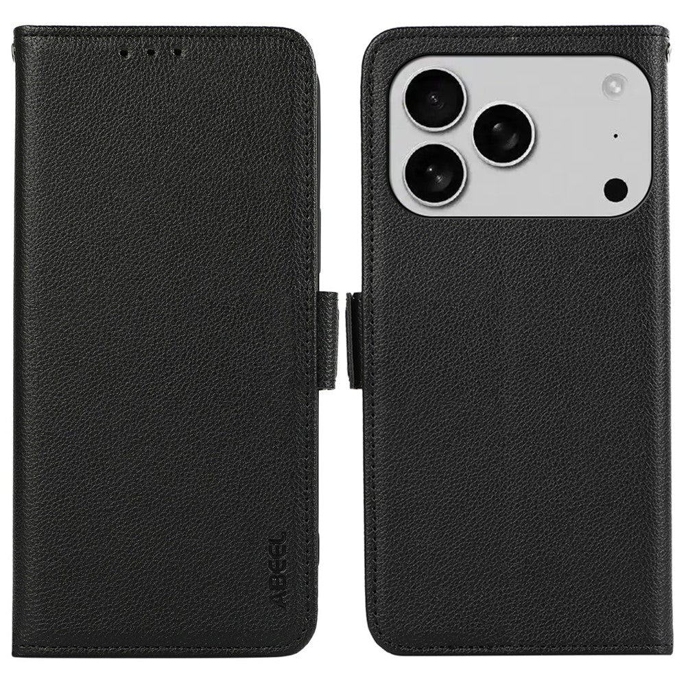 ABEEL For iPhone 17 Pro Max Case Litchi Texture Leather RFID Blocking Phone Cover - Black