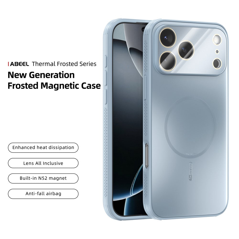 ABEEL For iPhone 17 Pro Max Magnetic Case TPU PC Cooling Matte Phone Back Cover with Lens Film - Baby Blue