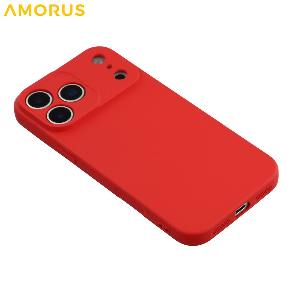 AMORUS For iPhone 17 Pro Max Case Precise Cutouts TPU Fiber Lining Shockproof Phone Cover - Red