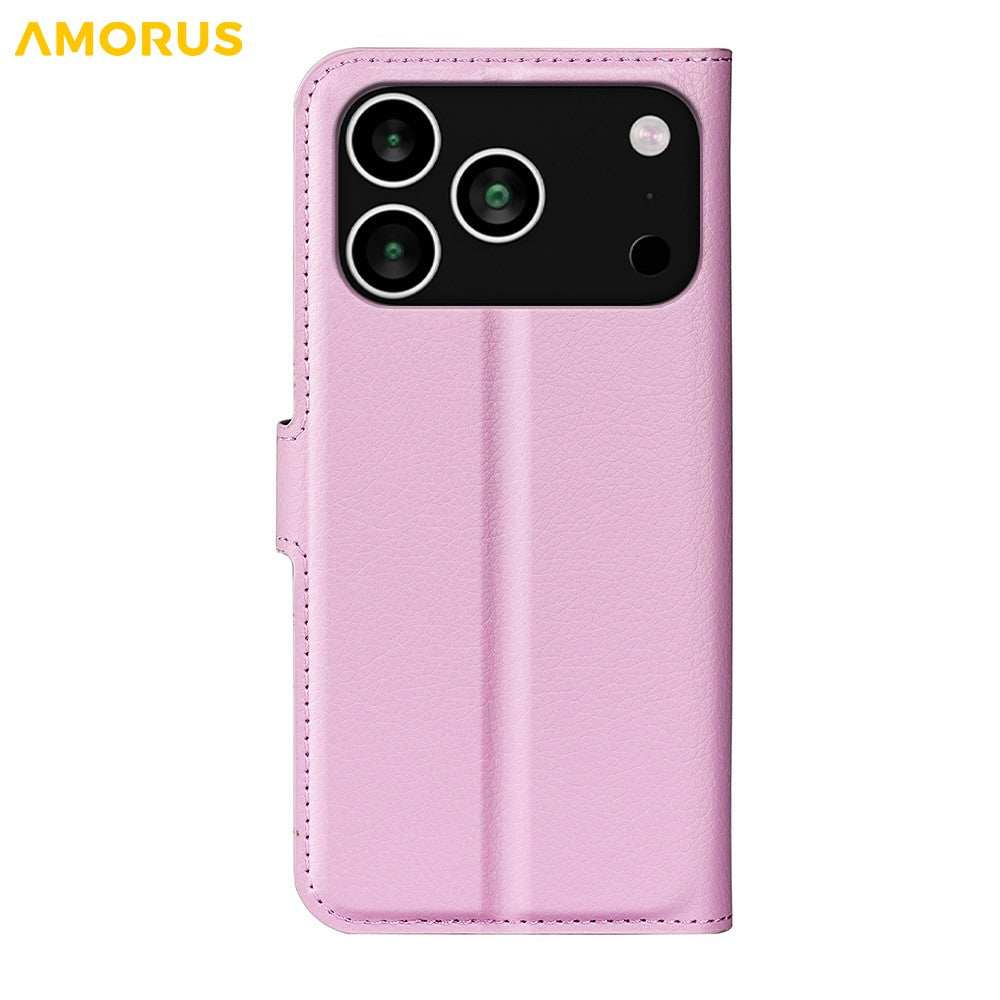 AMORUS For iPhone 17 Pro Max Wallet Case Litchi Texture Shockproof Leather Flip Stand Phone Cover - Pink