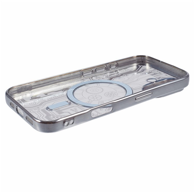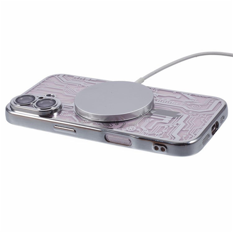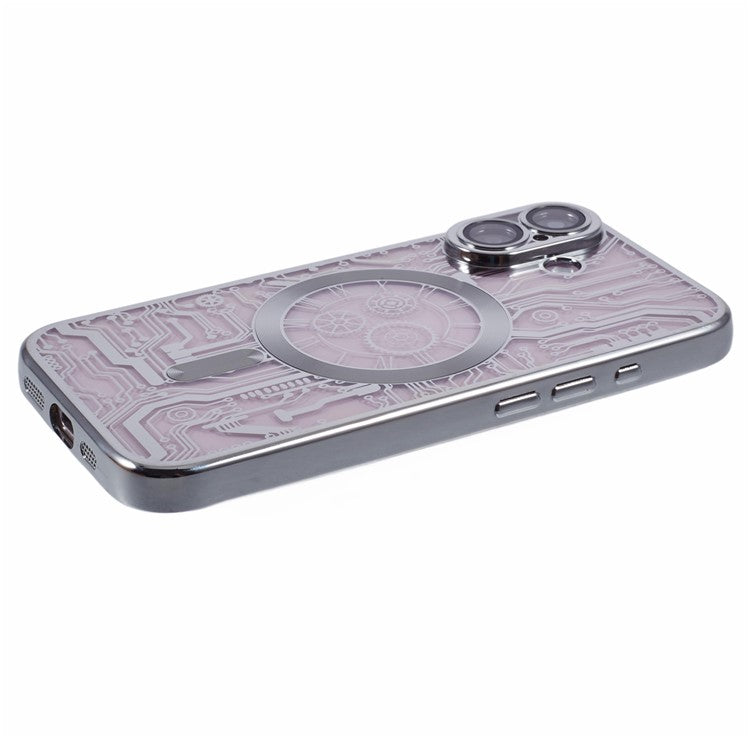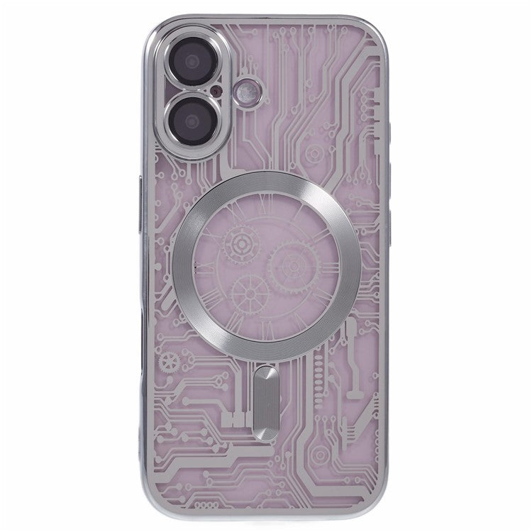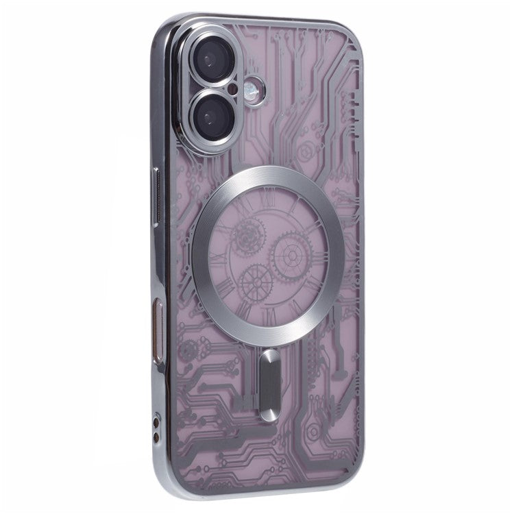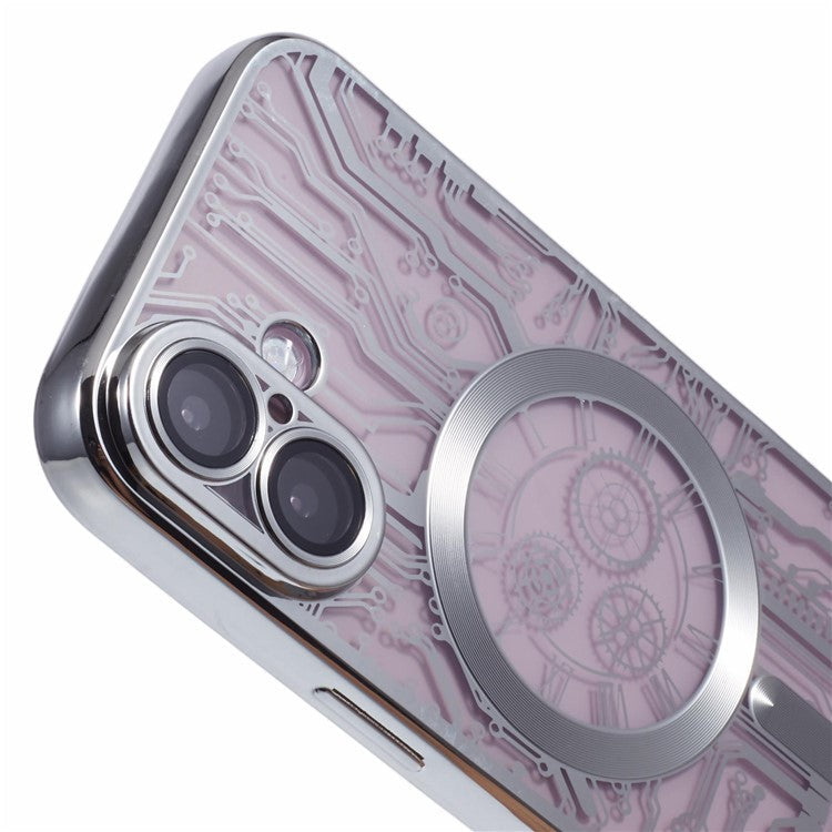 AR Series For iPhone 16 Plus Case Compatible with MagSafe Gear Design TPU Phone Cover with Lens Film - Silver
