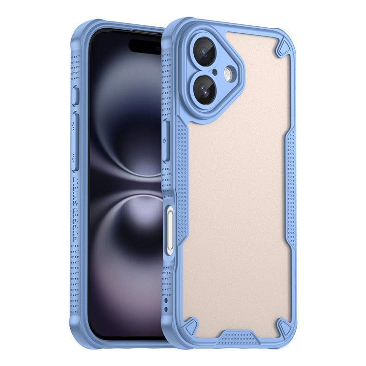 Armor Series For iPhone 16 Plus Case PC+TPU Semi-Transparent Frosted Finish Protective Phone Cover - Blue