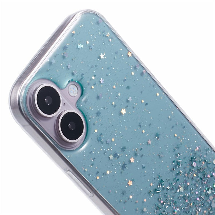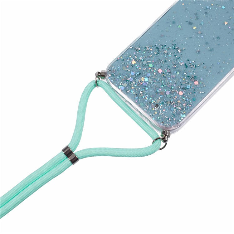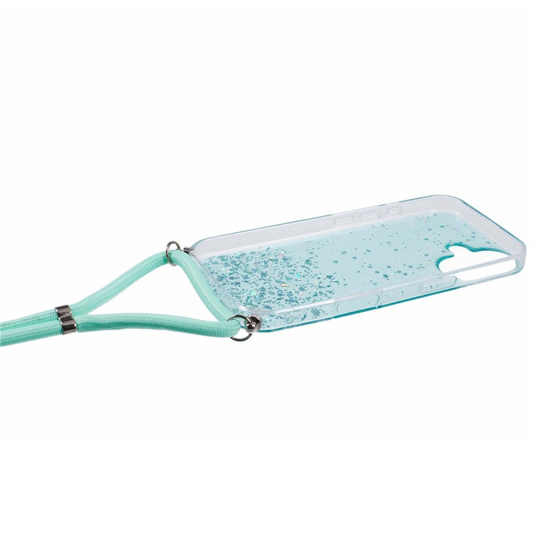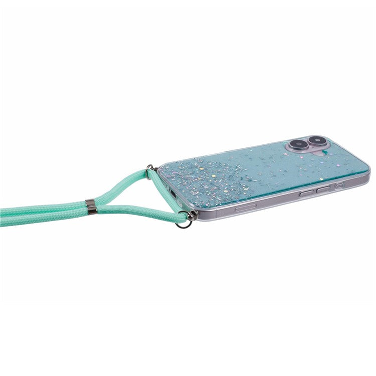 AW Series For iPhone 16 Plus Case Soft TPU Sparkle Epoxy Phone Cover with Lanyard - Green