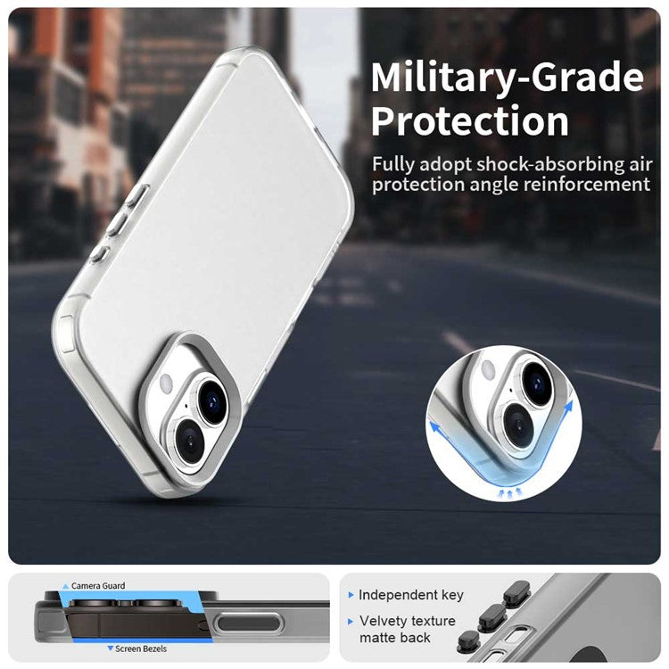 For iPhone 16 Case PC+TPU+PET Matte Anti-Drop Phone Back Cover - White