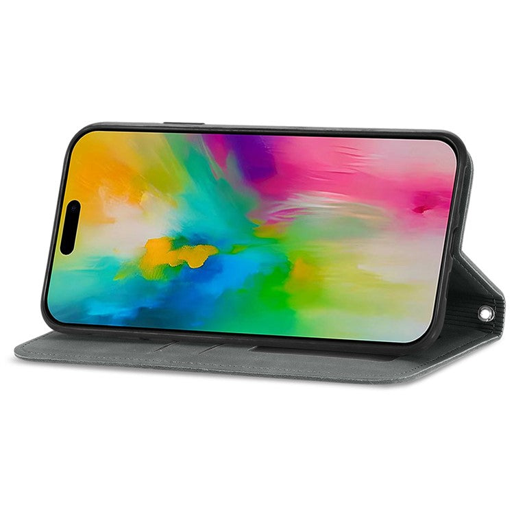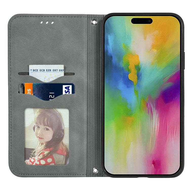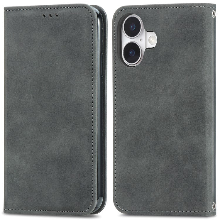 For iPhone 16 Case Skin Touch Feeling Leather Card Holder Phone Cover Magnetic Absorption - Grey