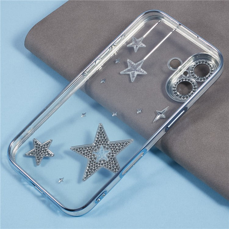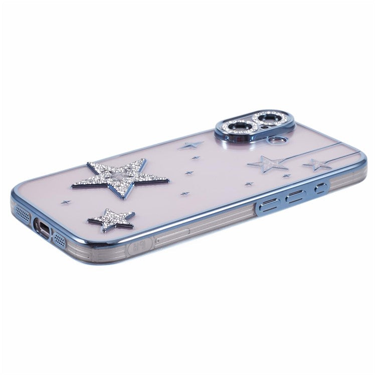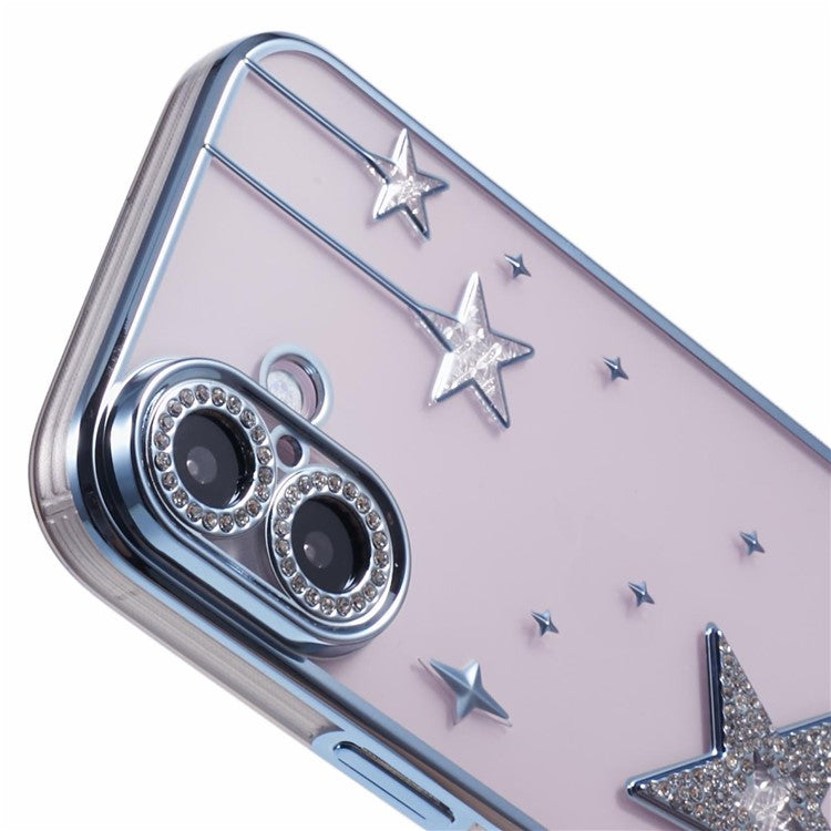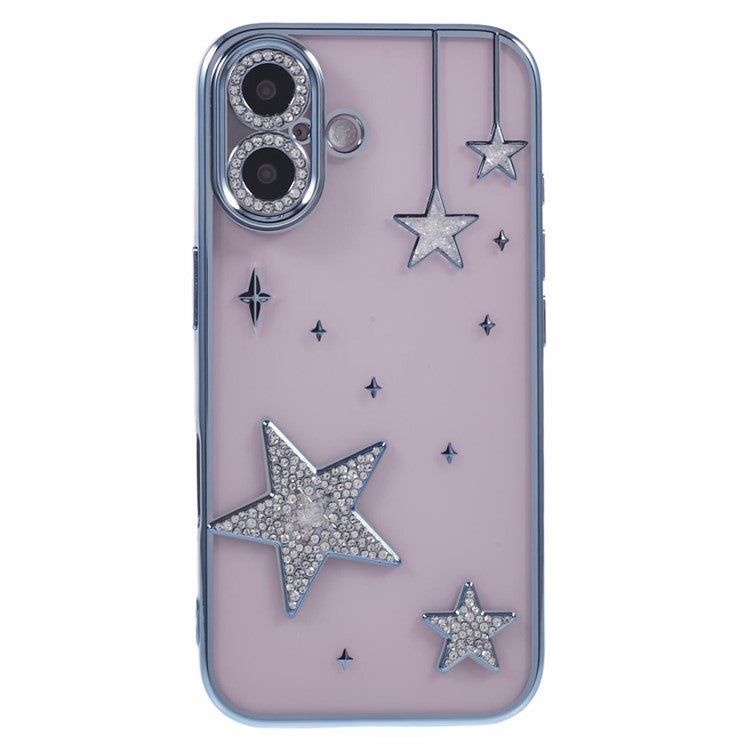 For iPhone 16 Plus Case 3D Bling Stars Electroplating TPU Clear Phone Case - Blue