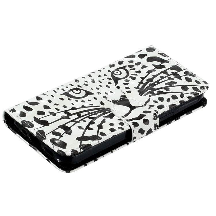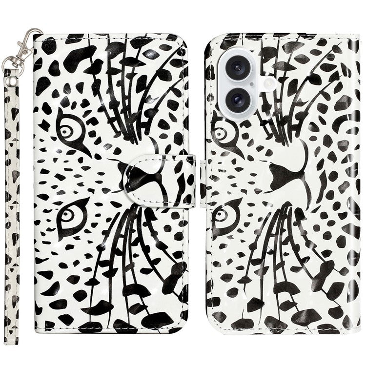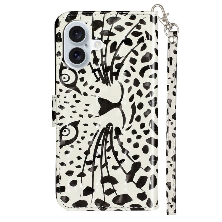 For iPhone 16 Plus Case 3D Pattern Printed Leather Wallet Phone Cover Stand Bookstyle - Leopard Head