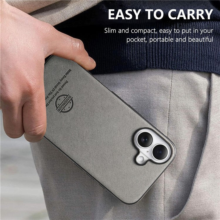 For iPhone 16 Plus Case Cloth Texture Leather+PC+TPU Anti-Drop Phone Cover - Grey