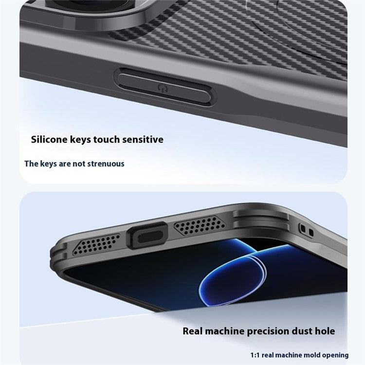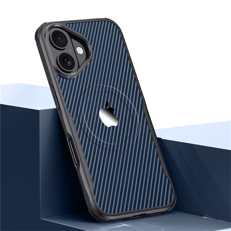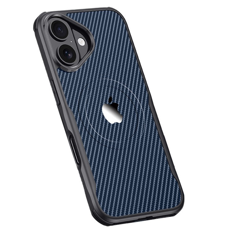 For iPhone 16 Plus Case Compatible with MagSafe Carbon Fiber Texture PU+PC+Silicone Phone Cover - Sapphire