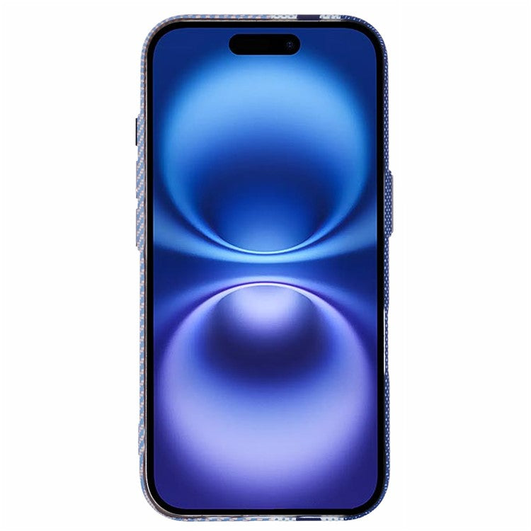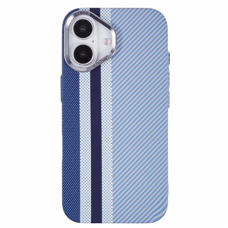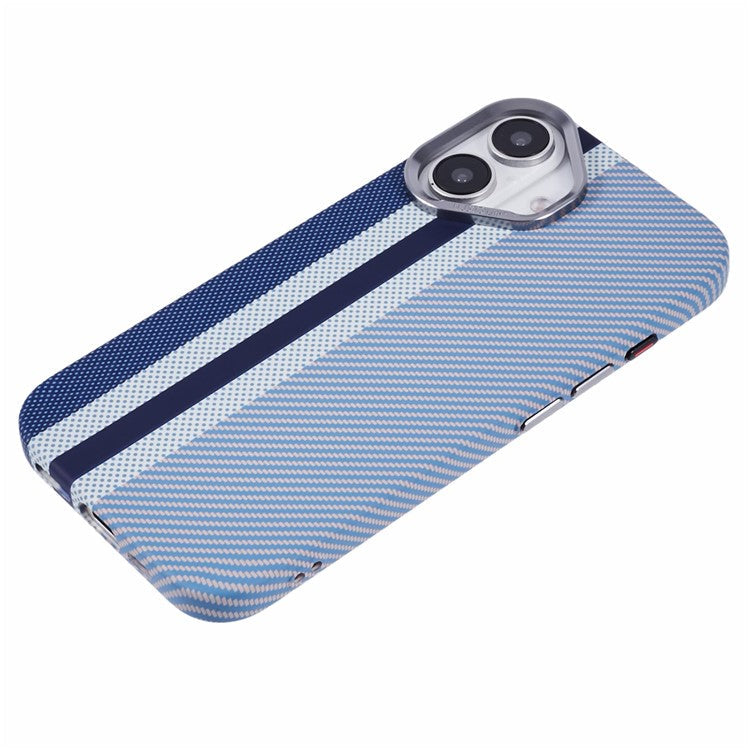 For iPhone 16 Plus Case Compatible with MagSafe Carbon Fiber Texture Water-Transfer PC Phone Cover - Blue Vertical Stripes