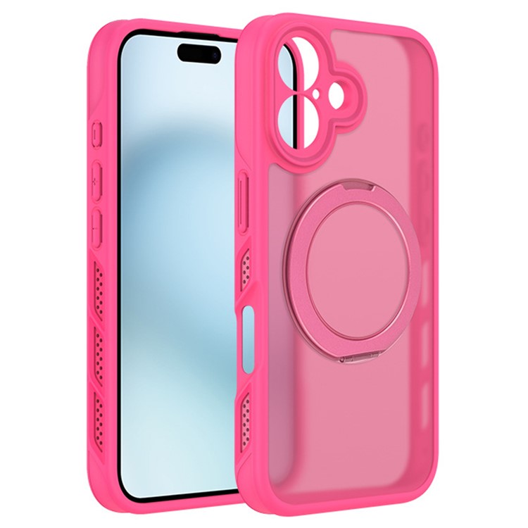 For iPhone 16 Plus Case Heat Dissipation Kickstand TPU+PC Magnetic Phone Case Translucent Matte - Rose