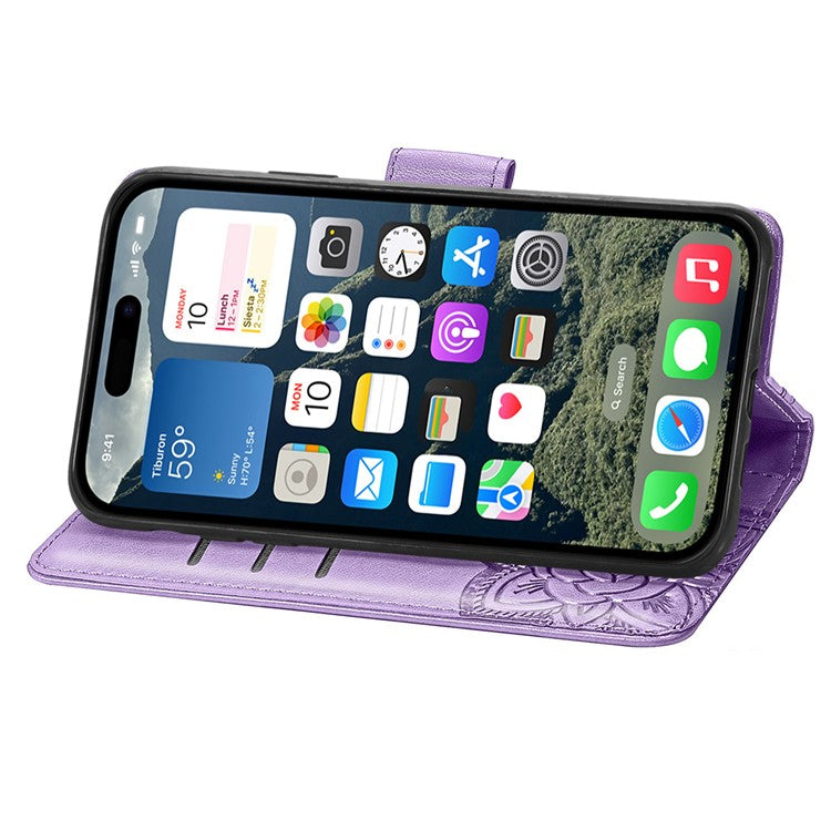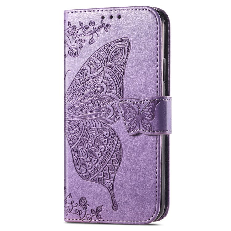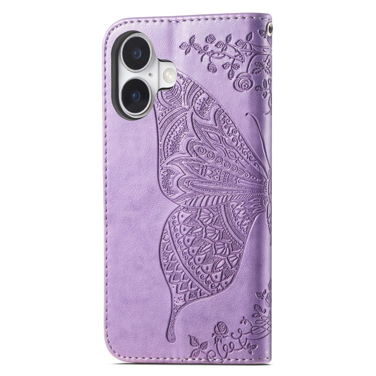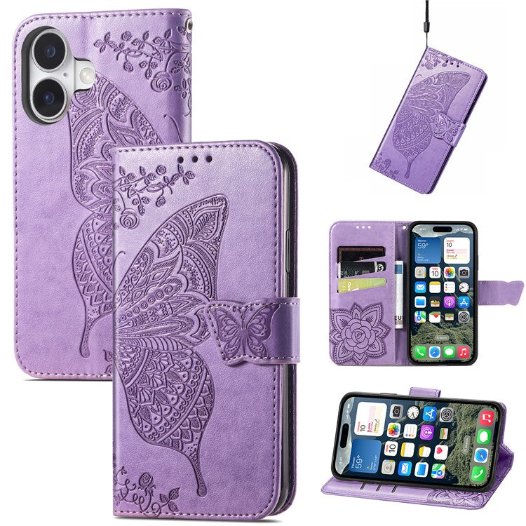 For iPhone 16 Plus Case PU Leather Wallet Phone Cover Butterfly Pattern - Light Purple