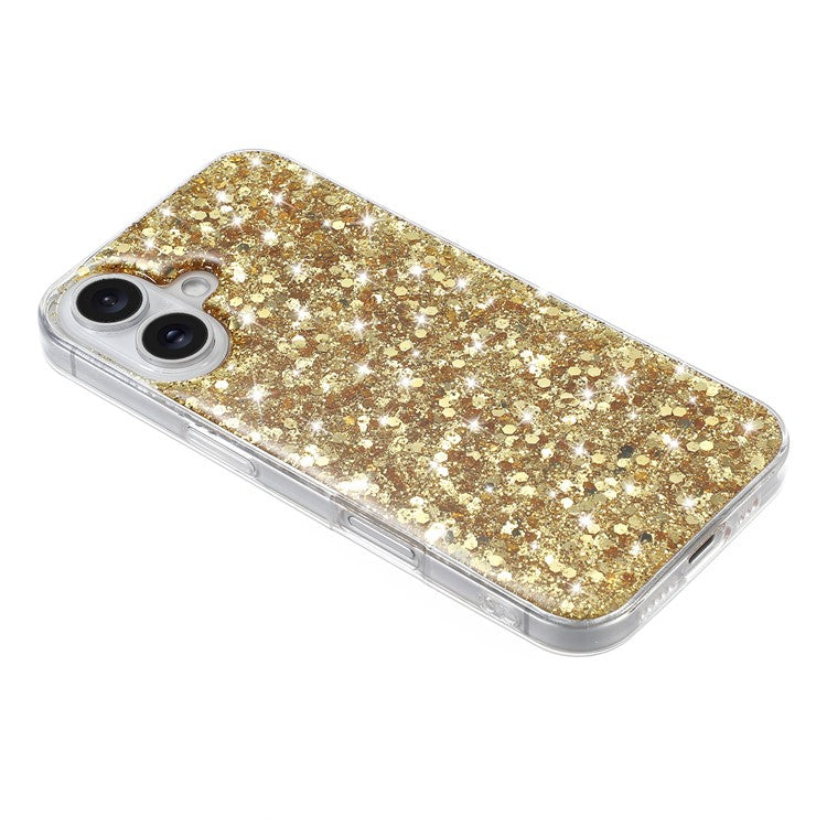 For iPhone 16 Plus Case TPU Drop Protection Epoxy Glittery Sequins Phone Cover - Gold