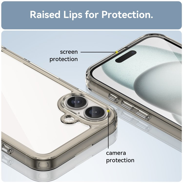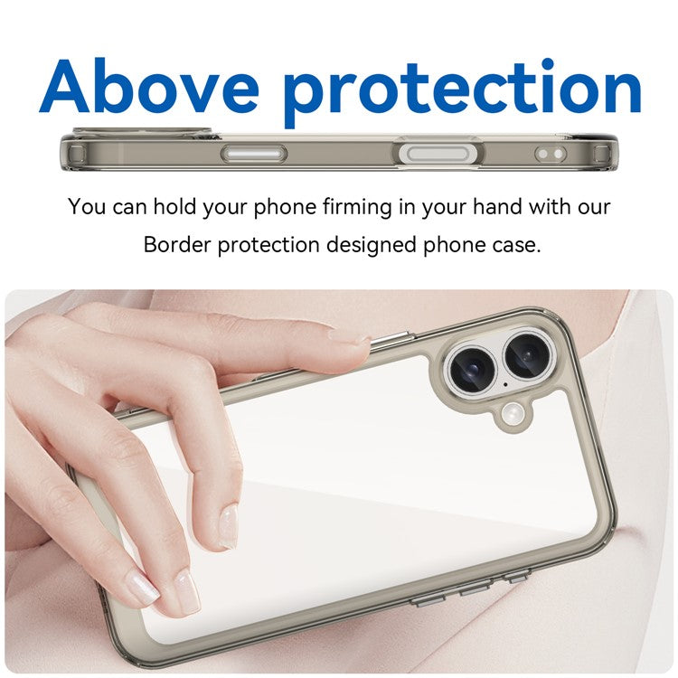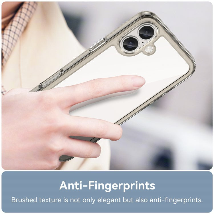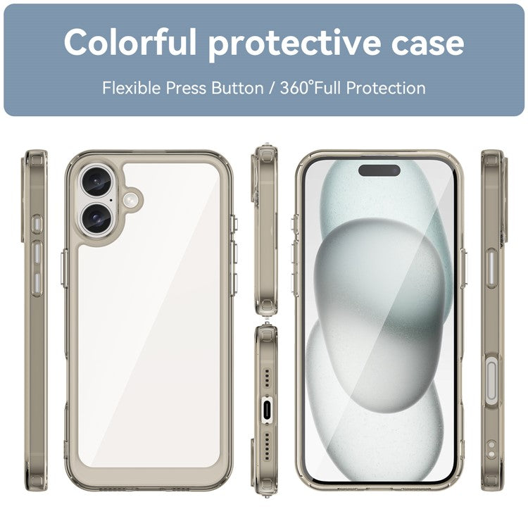 For iPhone 16 Plus Case TPU Frame Clear Acrylic Back Phone Cover - Transparent Grey
