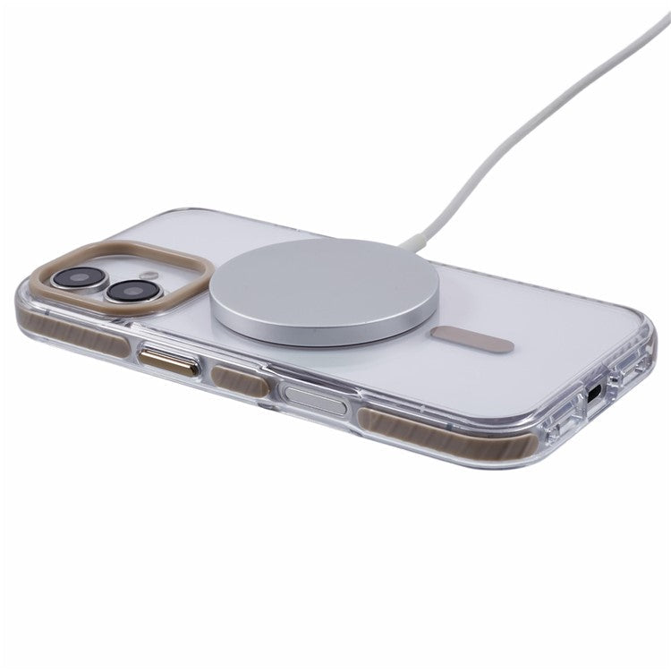 For iPhone 16 Plus Clear Case Compatible with MagSafe TPU+PC Back Cover - Brown