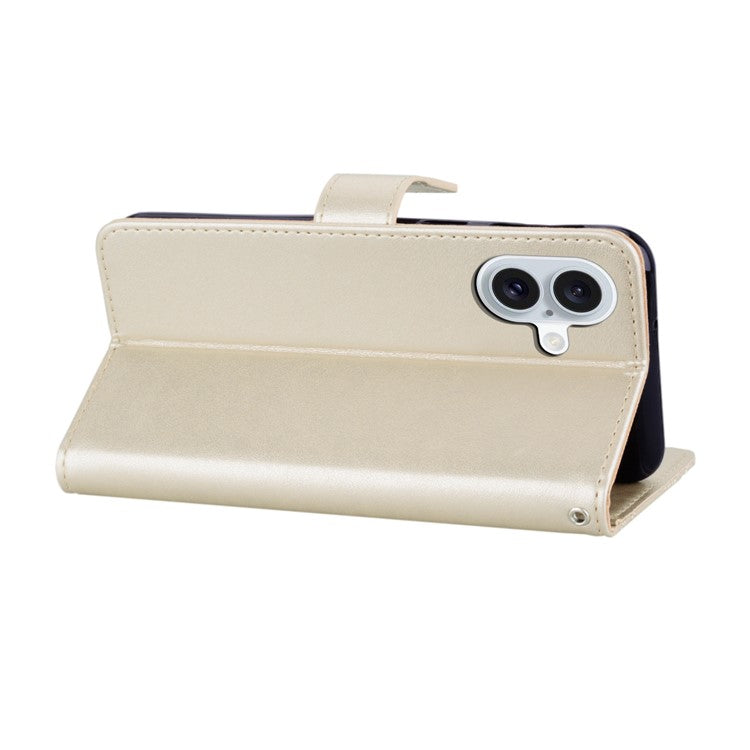 For iPhone 16 Wallet Case Owl Flower Imprinted Rhinestone Leather Cover - Gold