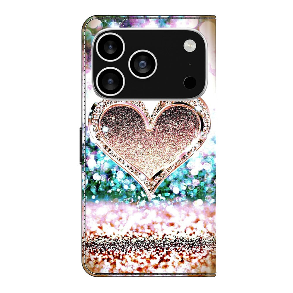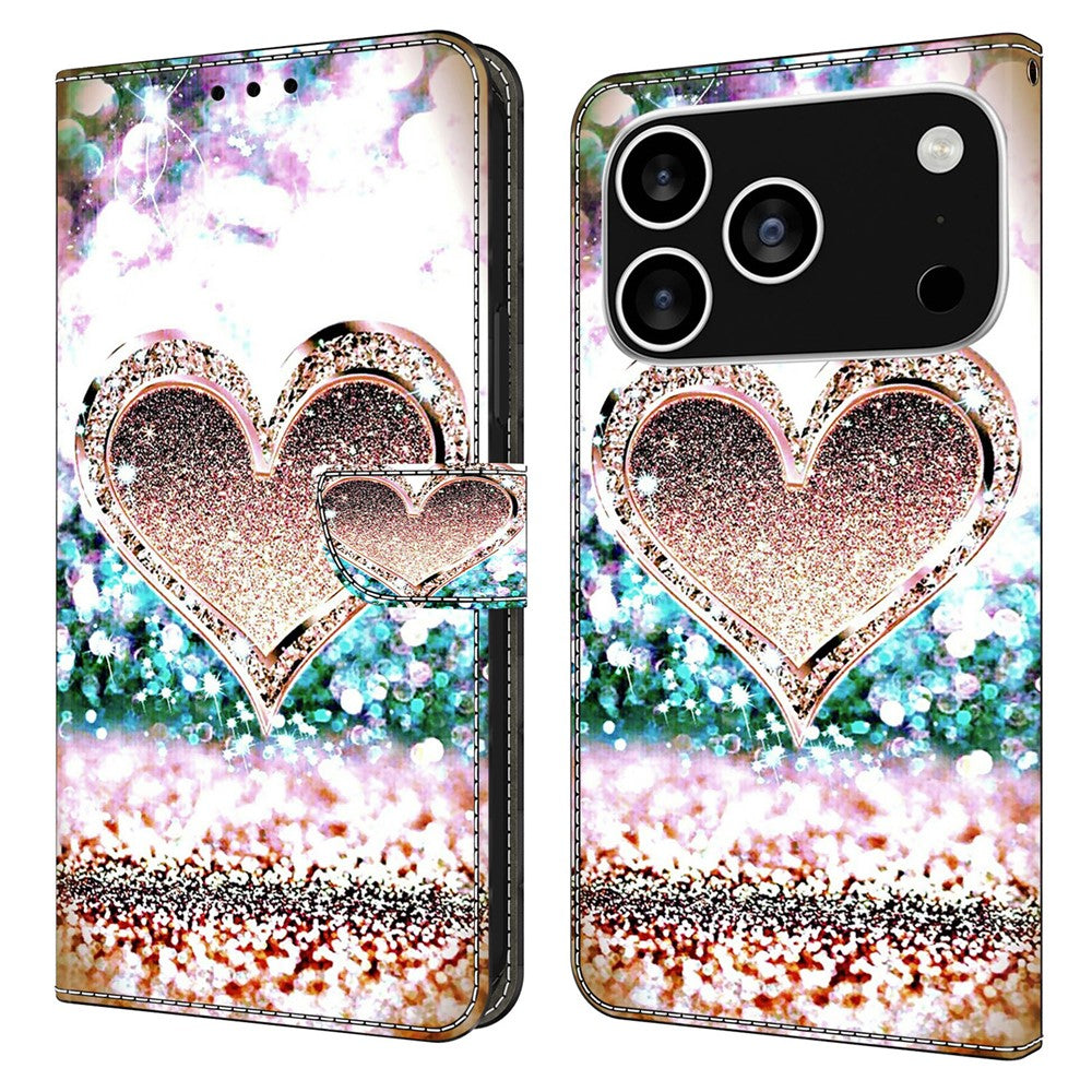 For iPhone 17 Pro Max Case 3D Pattern PU Leather Wallet Phone Cover with Stand - Pink Diamond Heart