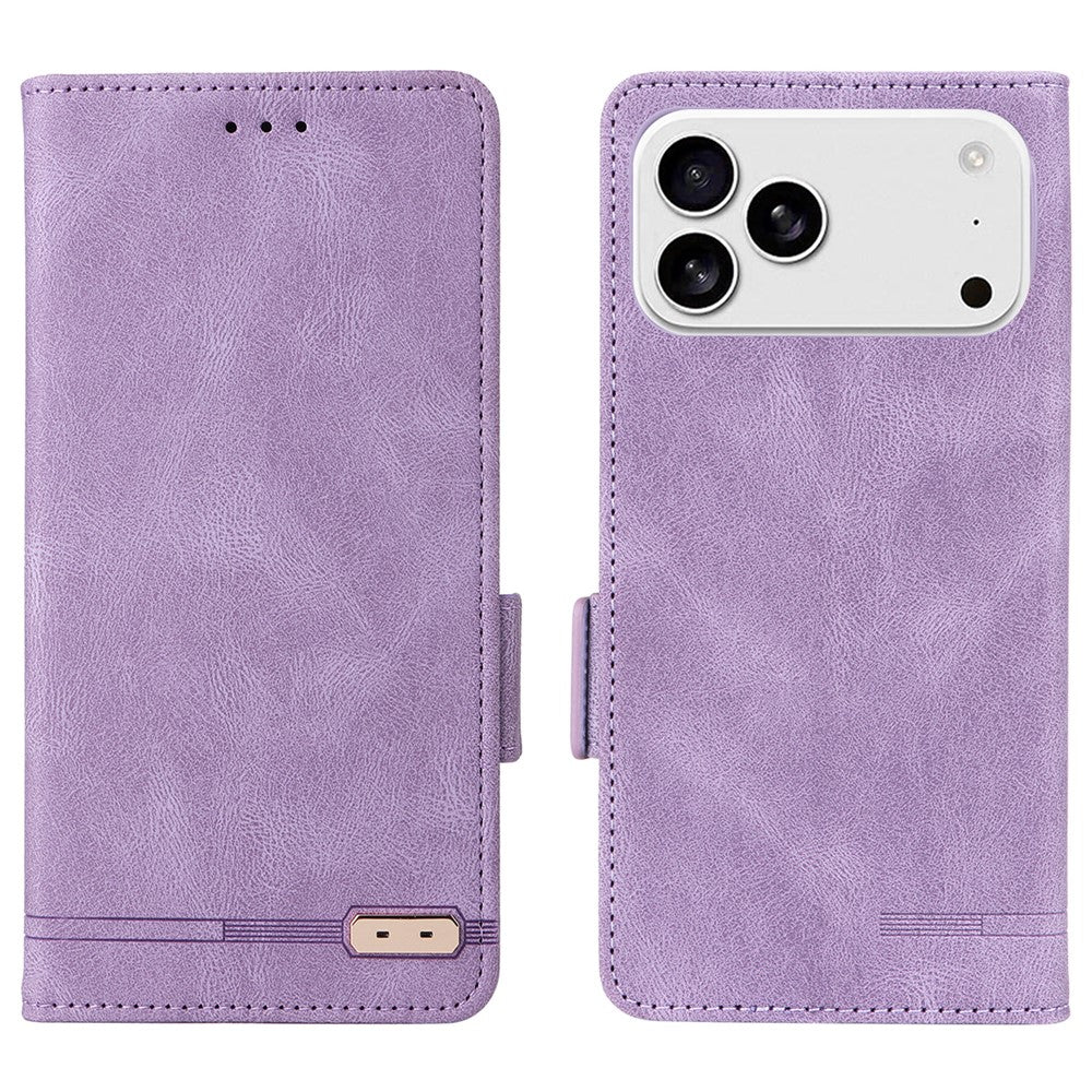 For iPhone 17 Pro Max Case Leather Wallet Flip Phone Cover with Hardware Decor - Purple