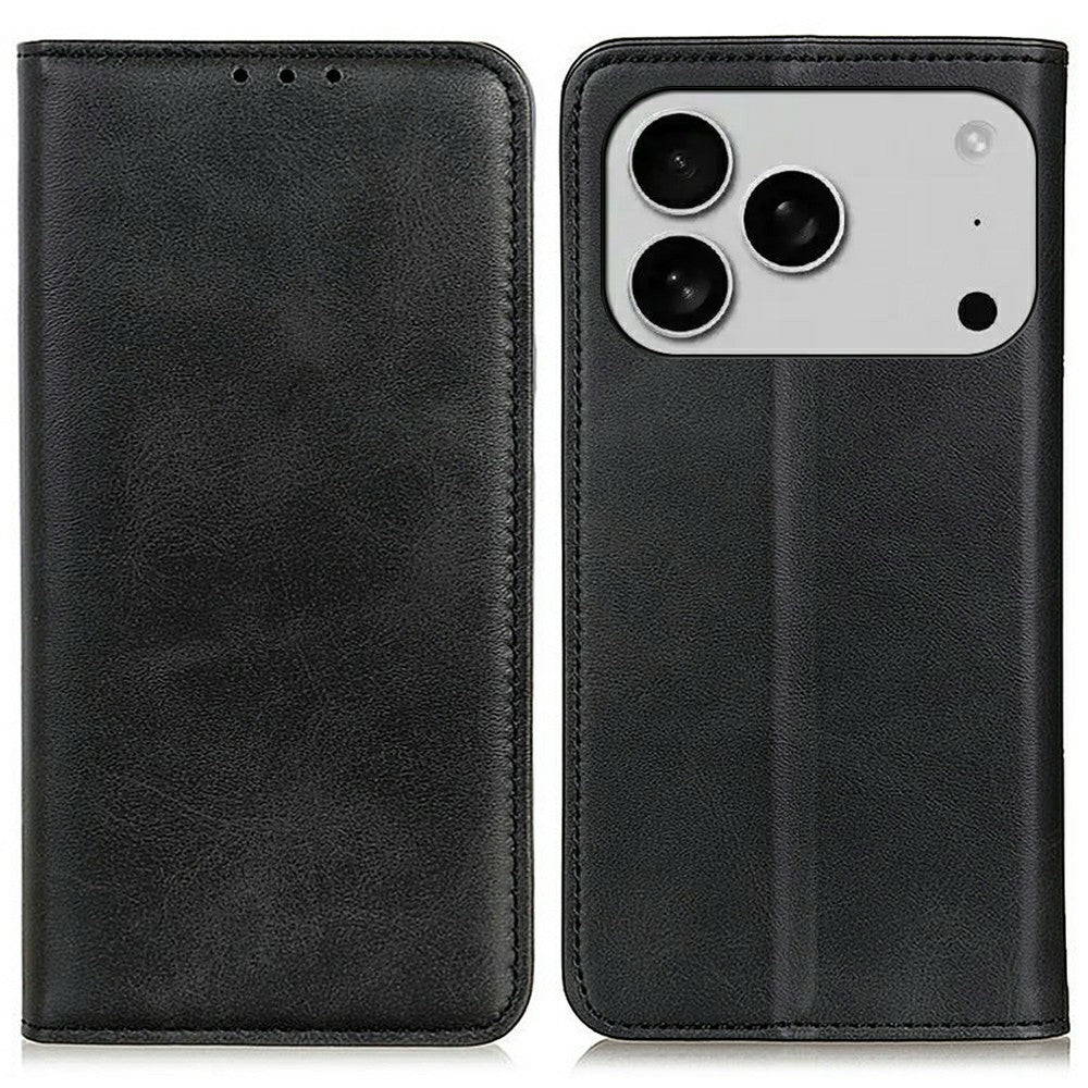 For iPhone 17 Pro Max Case Split Leather Flip Wallet Phone Cover - Black