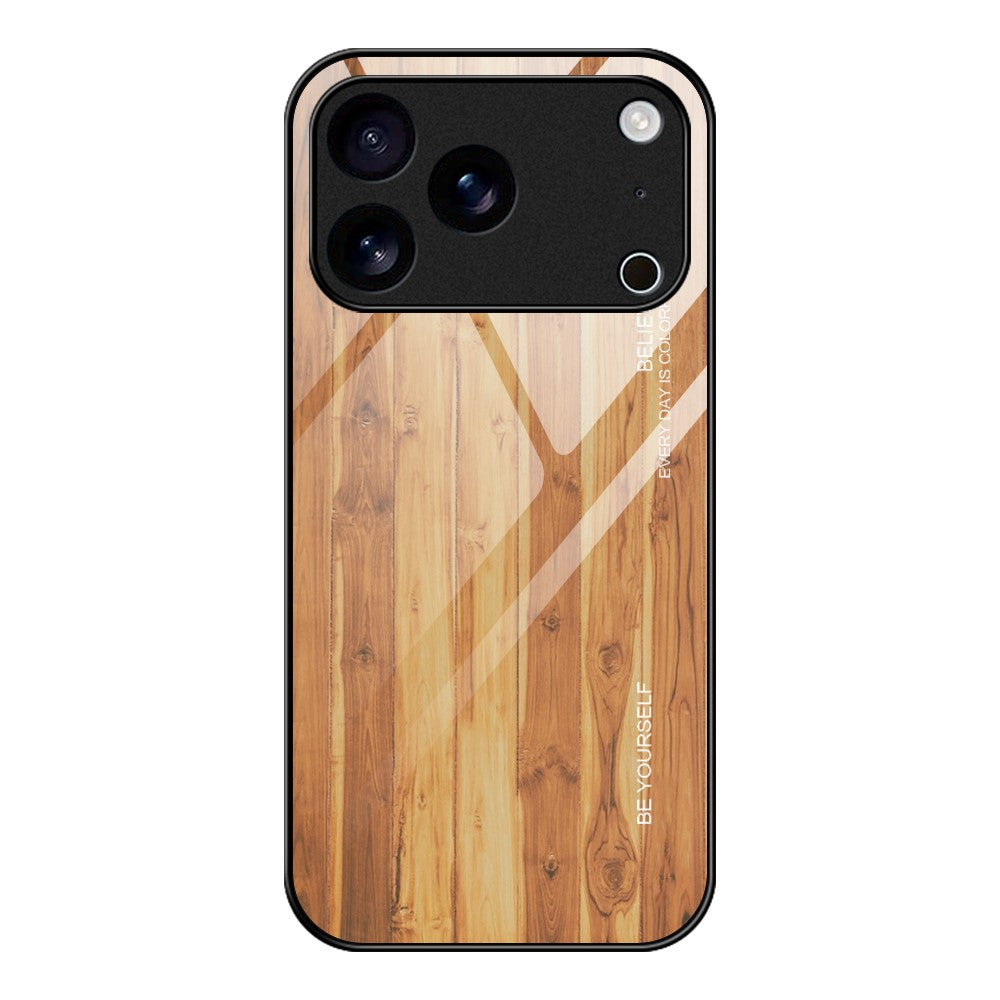For iPhone 17 Pro Max Case TPU + Tempered Glass Back Phone Cover Wood Texture - Brown