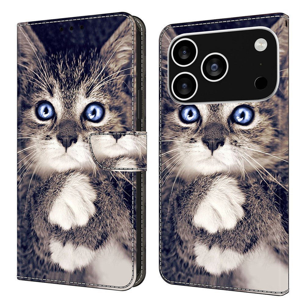 For iPhone 17 Pro Max Leather Case Pattern Printing Wallet Stand Flip Phone Cover - Hand-holding Cat