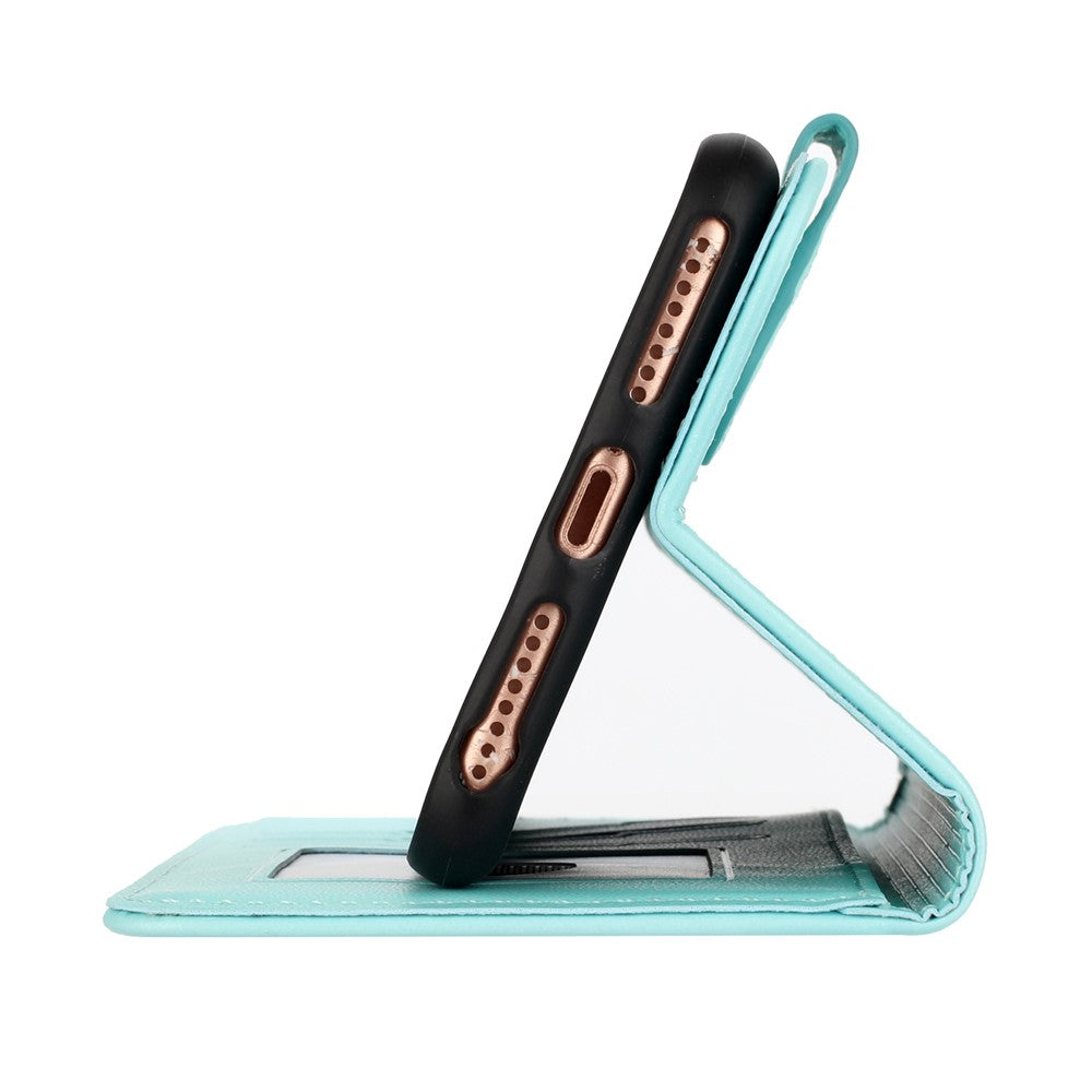 For iPhone 17 Pro Max Phone Cases Mandala Flower Leather Wallet Mobile Cover with Strap - Light Blue