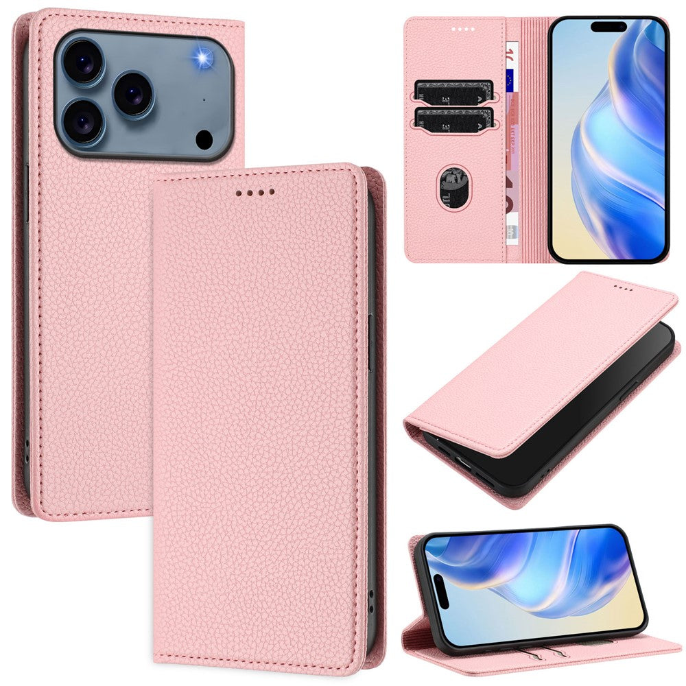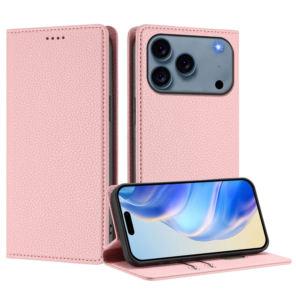 For iPhone 17 Pro Max Wallet Case RFID Blocking Litchi Texture Leather Mobile Cover - Pink