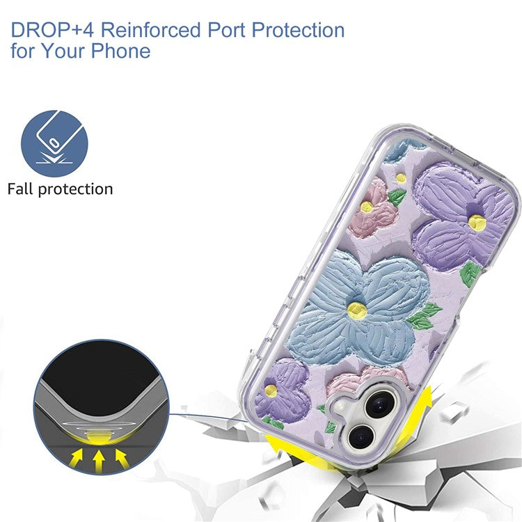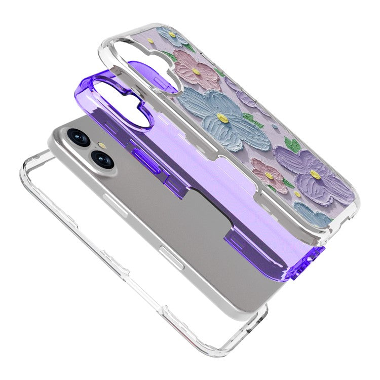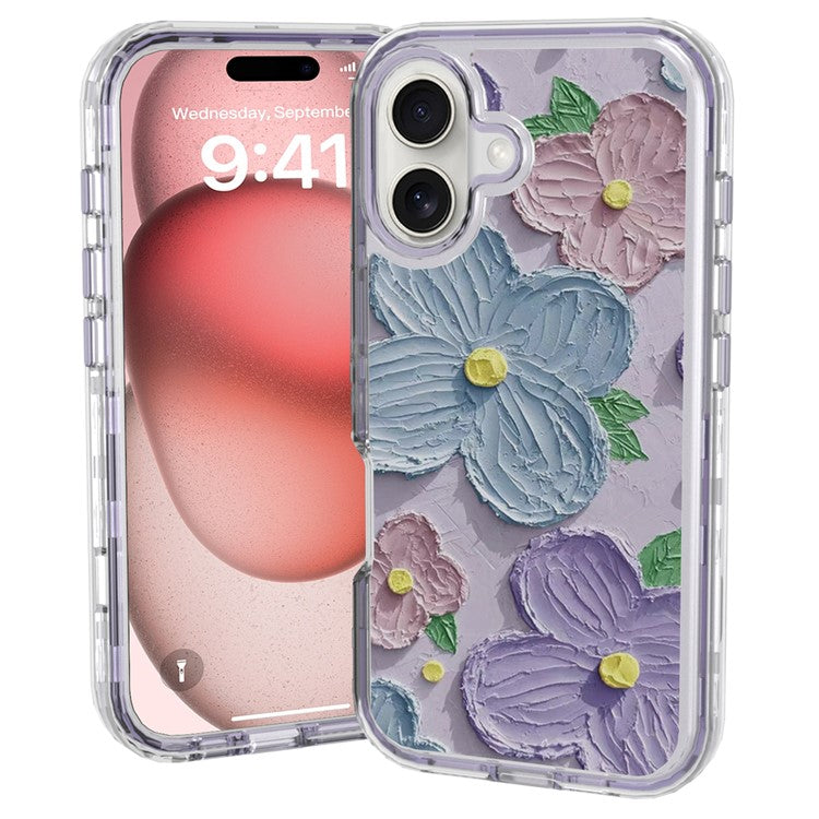 GW02 For iPhone 16 Plus Case IMD Pattern TPU+PC Shockproof Phone Cover - Purple Flower