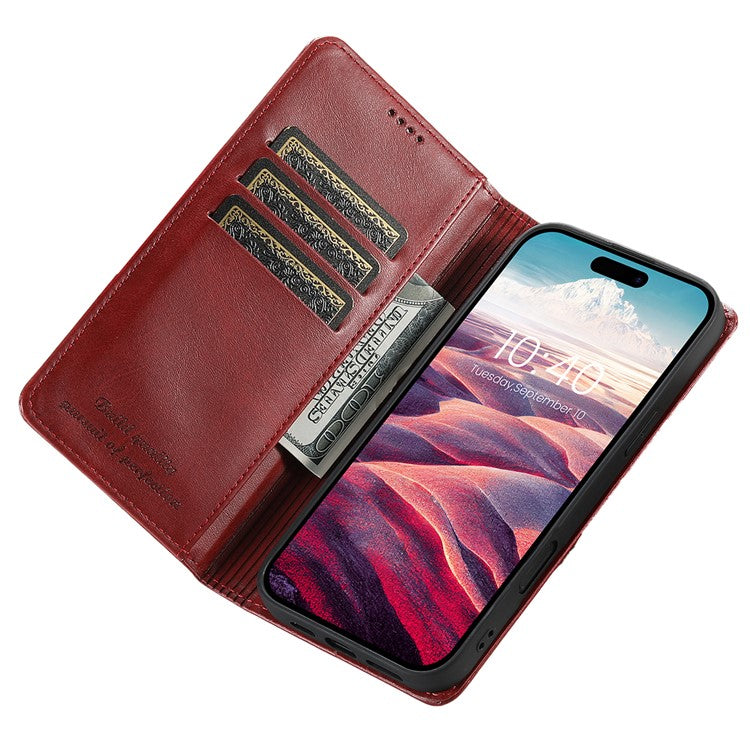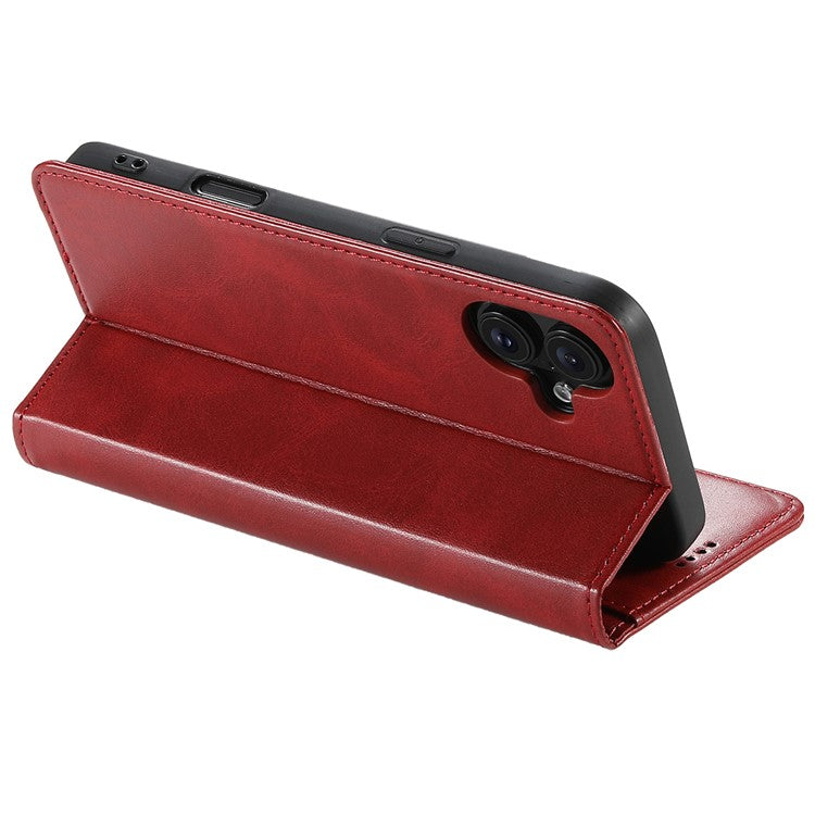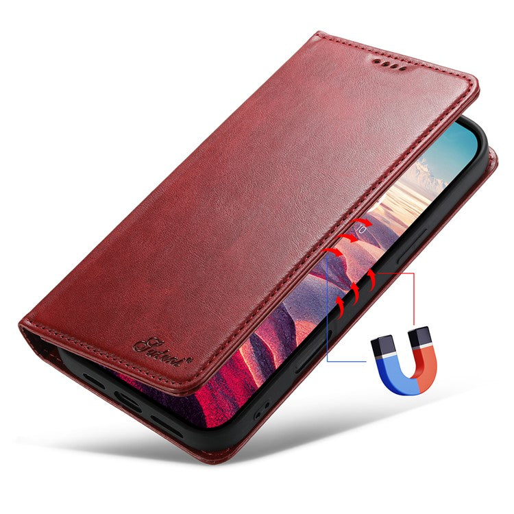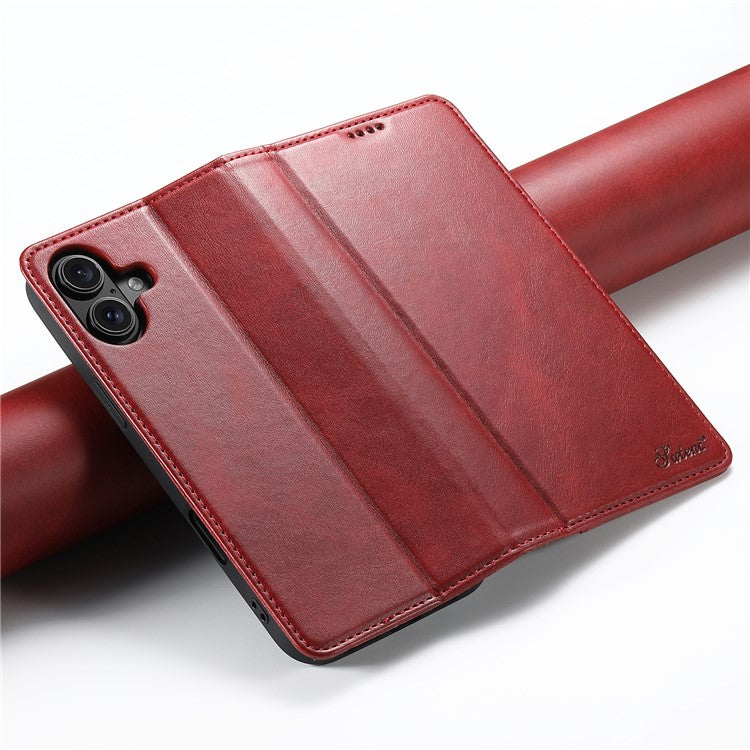SUTENI For iPhone 16 Case PU Leather Wallet Stand Magnetic Closing Phone Cover - Red