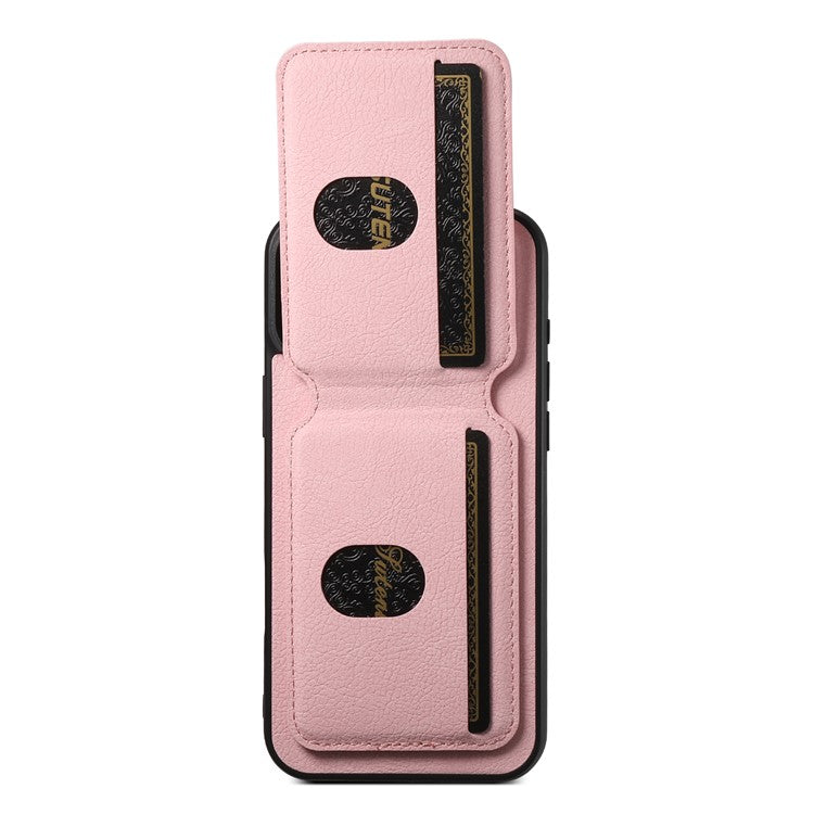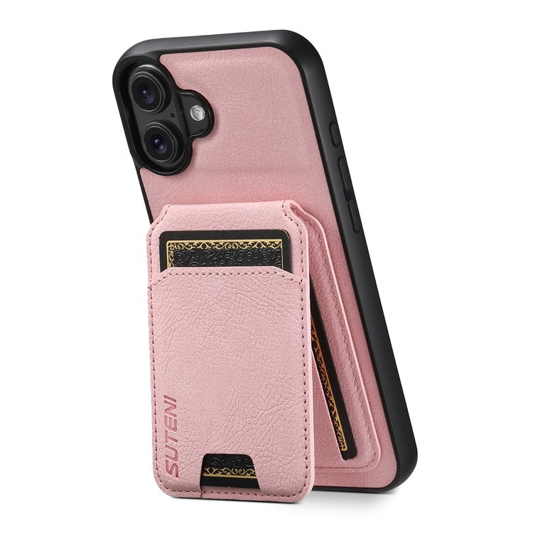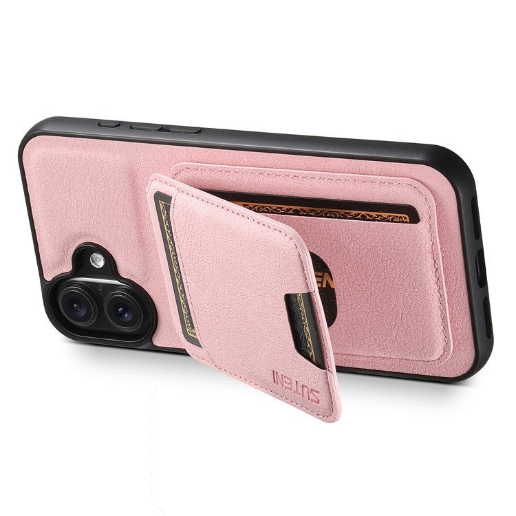 SUTENI H02 For iPhone 16 Plus Case Card Slots Kickstand Litchi Texture Leather+TPU Cover - Pink