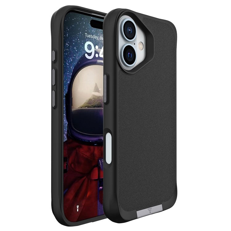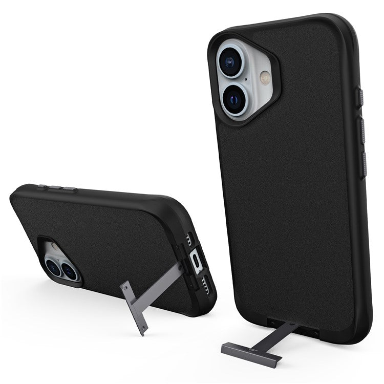 Taurustar Series For iPhone 16 Kickstand Case Shockproof PC+TPU Phone Cover - Black