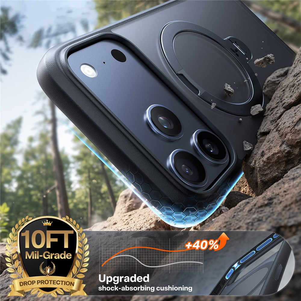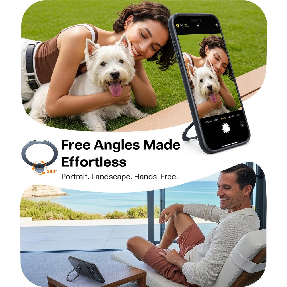 - ?360° Rotating Ring Kickstand?Equipped with a sturdy metal ring that rotates 360°, allowing for hands-free viewing in multiple orientations and easy grip