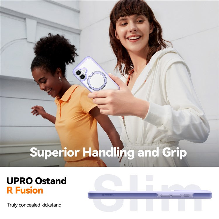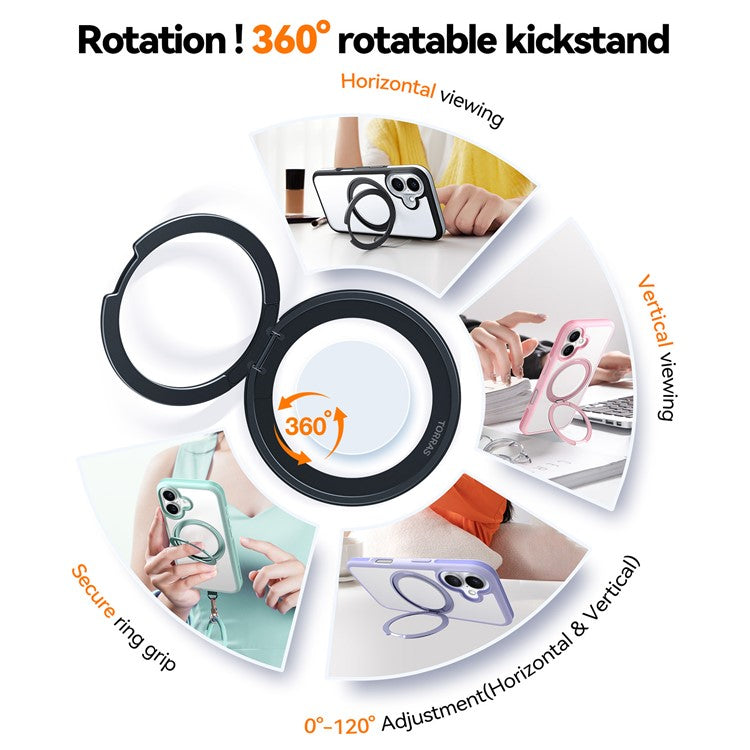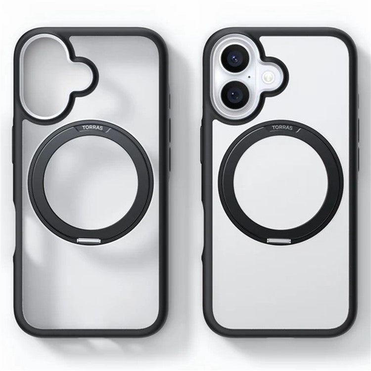 TORRAS Ostand R Fusion For iPhone 16 Plus Case 360 Degree Rotating Kickstand TPU+PC Phone Cover Compatible with MagSafe - Black