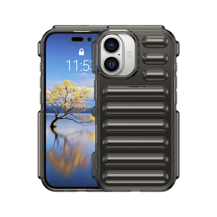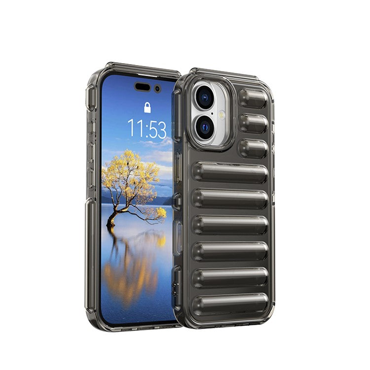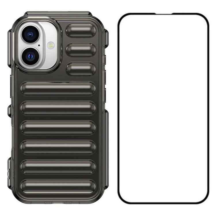 WANLONFENG LK Series for iPhone 16 Plus Case Anti-drop TPU Phone Cover with Screen Film - Transparent Grey