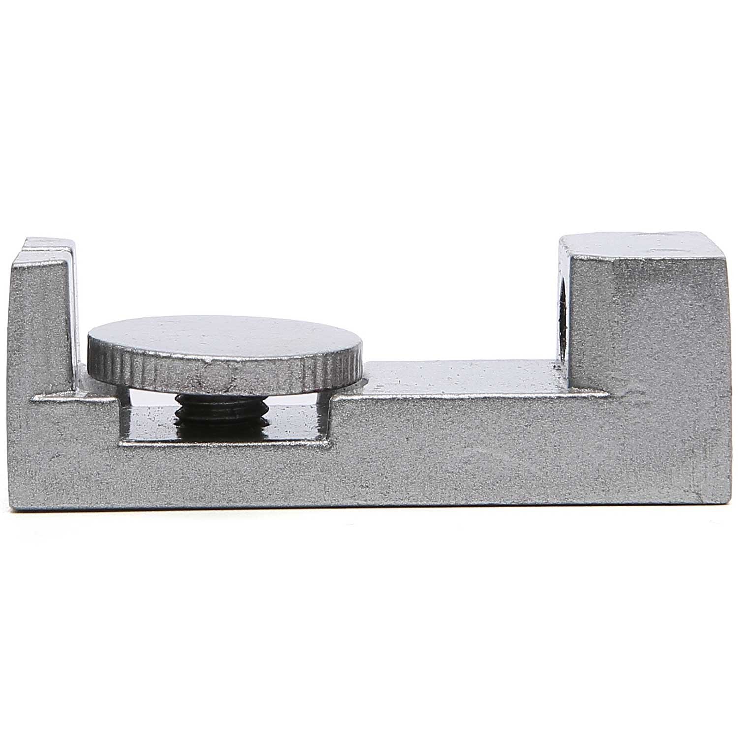 The watch link remover kit is designed with a round adjustable platform to allow proper positioning for probably any thickness of bracelet and the threaded push rod to remain level as it moves forward