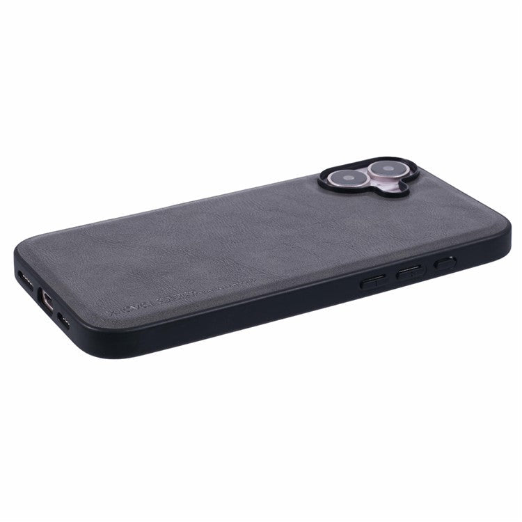 X-LEVEL Bojue-3 Series For iPhone 16 Plus Case Leather Coated PC+TPU Hybrid Protective Cover - Grey