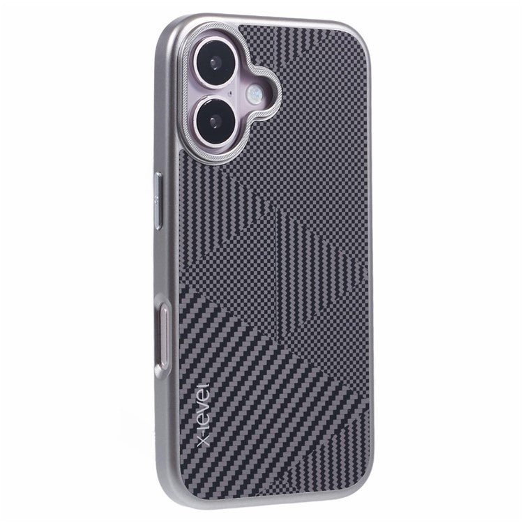 X-LEVEL For iPhone 16 Case Rhombus Splicing Hard PC Shockproof Phone Cover - Titanium Grey